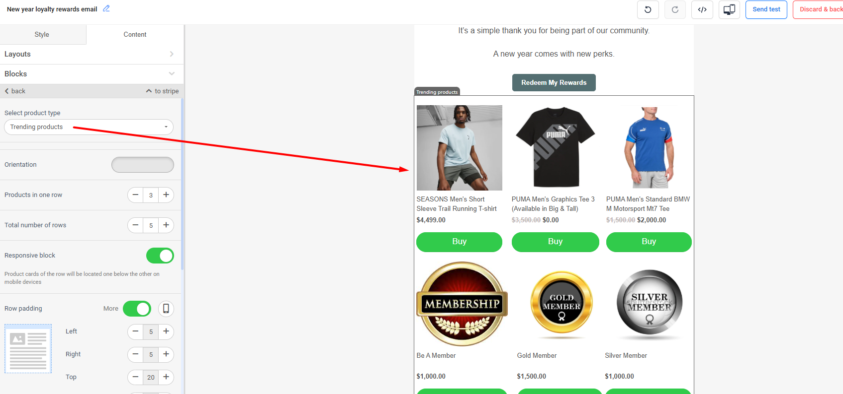Preview the email in both desktop and mobile views to verify product layout.