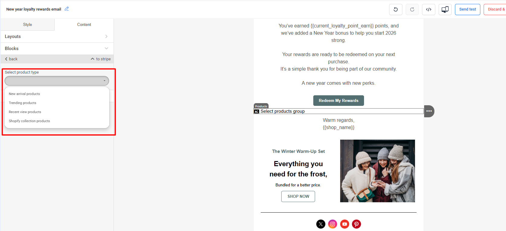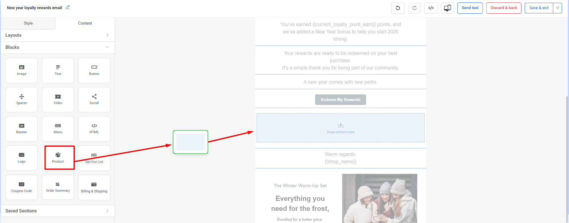 Avoid using too many product blocks in a single email, as this may impact readability and engagement.
