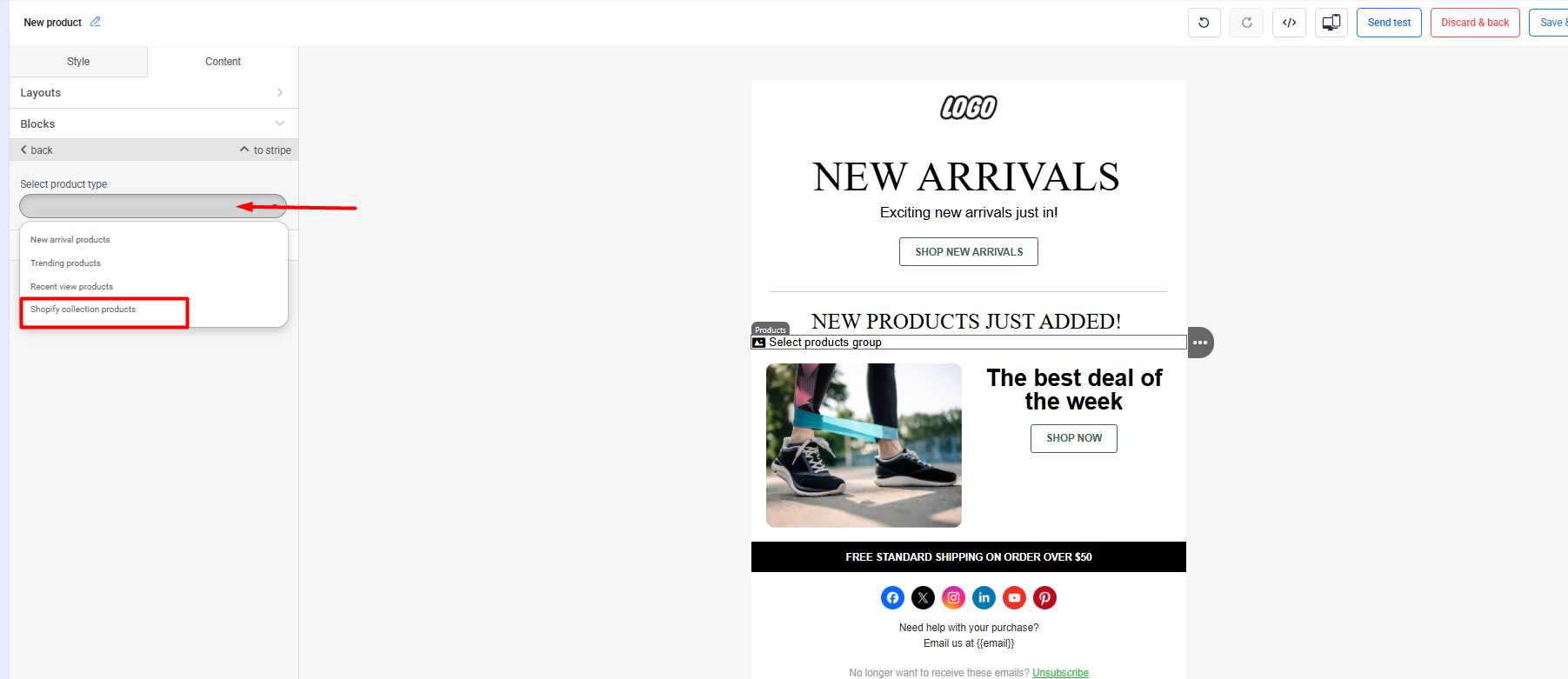 Avoid adding too many products to a single email, as this may impact readability and engagement.