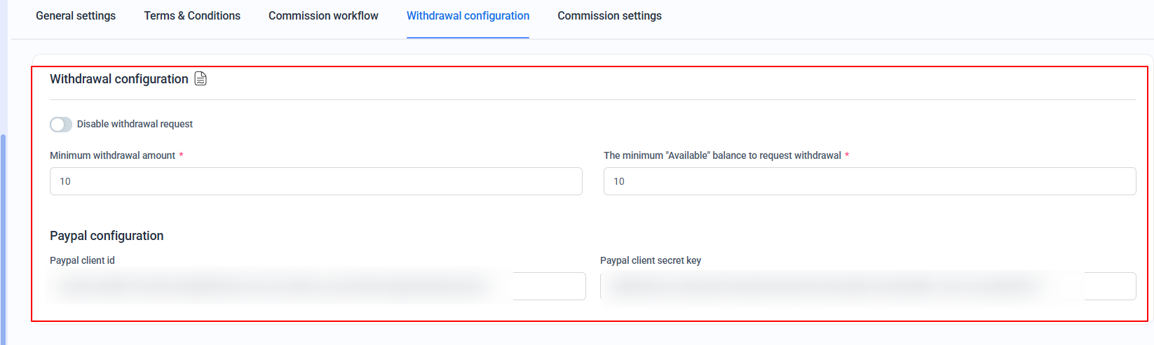This option allows the admin to enable or disable the withdrawal feature for affiliates.