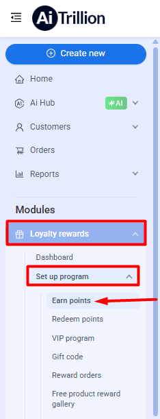 Introduction From this article, you'll gain an understanding of the various methods through which customers can accumulate points within the AiTrillion Loyalty Program. Here are some quick steps to set up loyalty to earn points: Step 1: Go to Loyalty ...