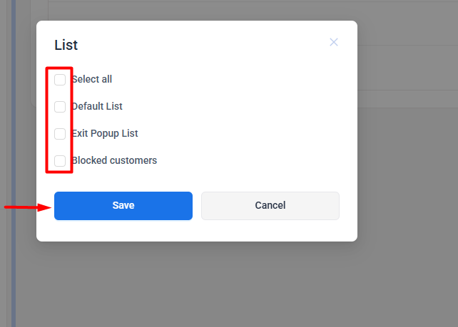 Step 4: Select a list where you would like to add the customer, then click on Save.