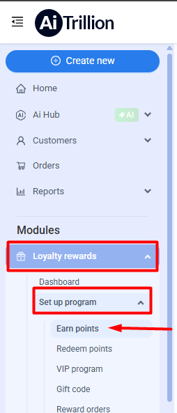 Step 1: Go to Loyalty rewards >> Set up program >> Earn Points section.