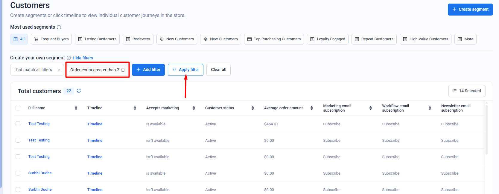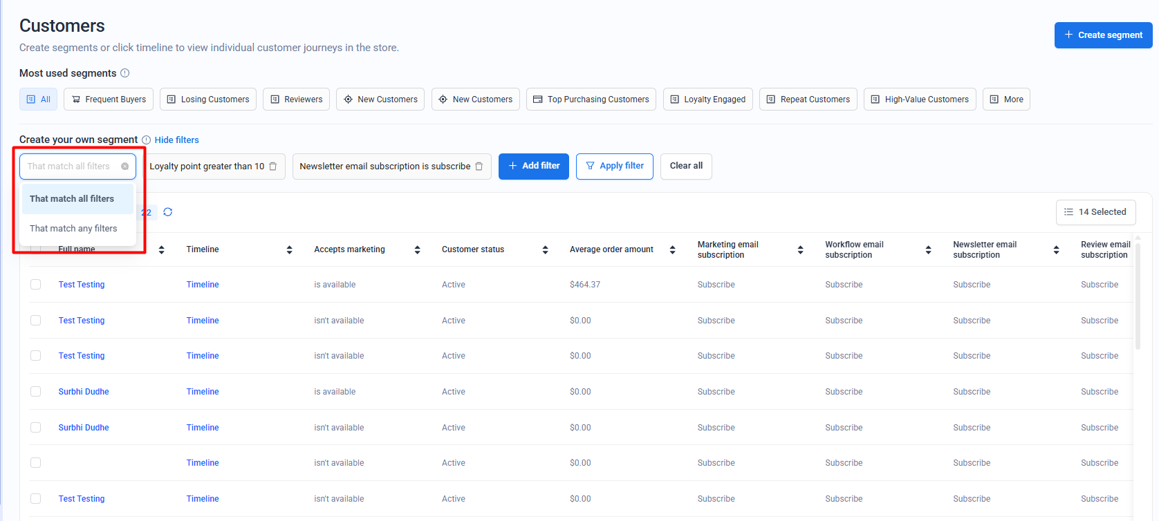Create a Customer Segment for email campaign