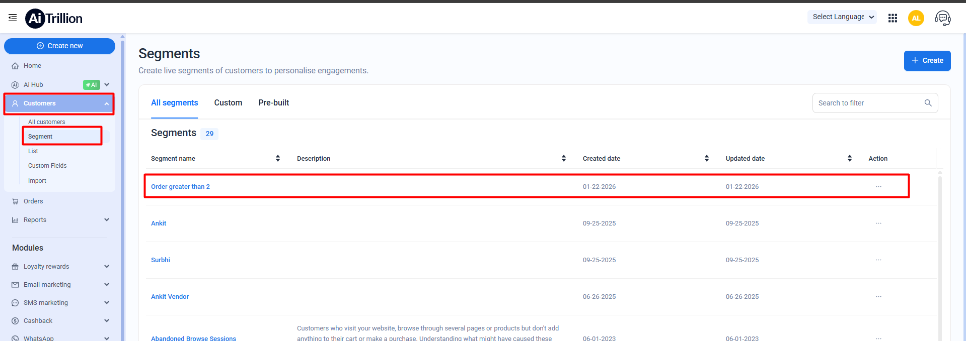 Create a Segment using Custom field