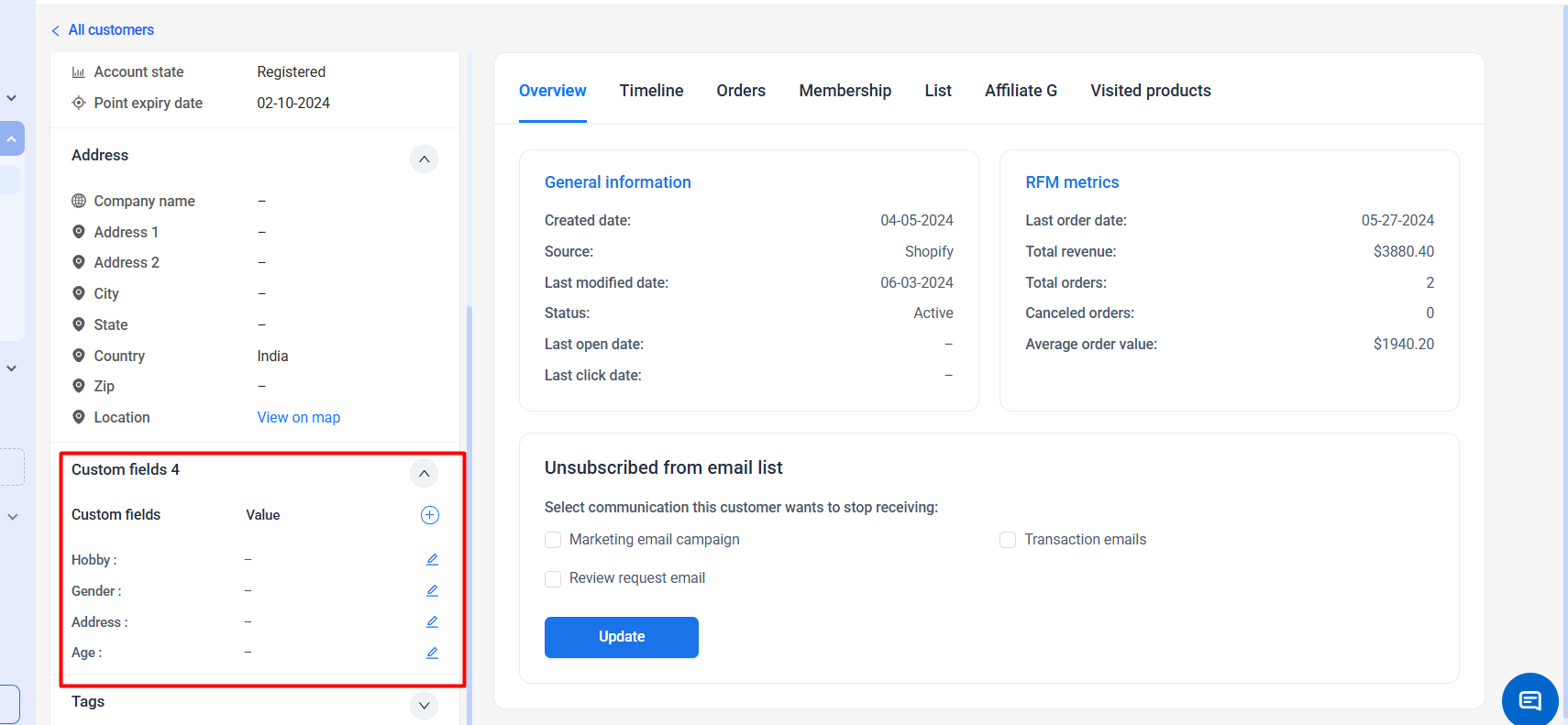 This helps you collect specific details such as preferences, birthdays, tags, loyalty information, or any other business-specific data that supports your marketing and automation strategies. Custom fields ensure that the data gathered from signup forms, popups, checkout pages, or third-party integrations is accurately stored and easily accessible within your customer database.