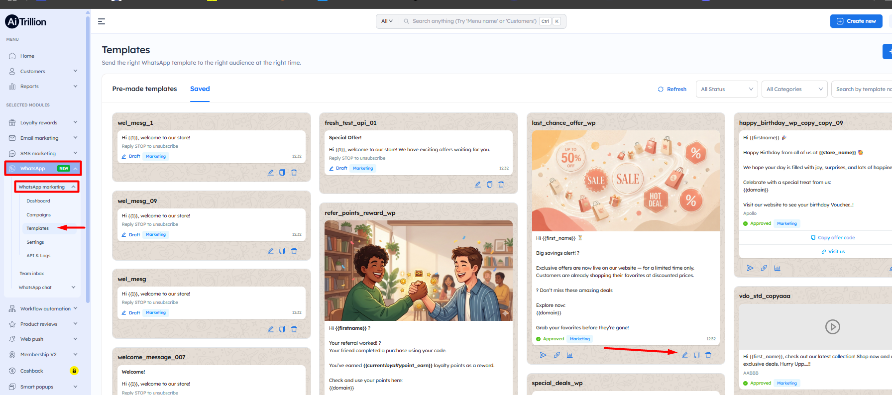 Here are the steps to edit a saved WhatsApp template: