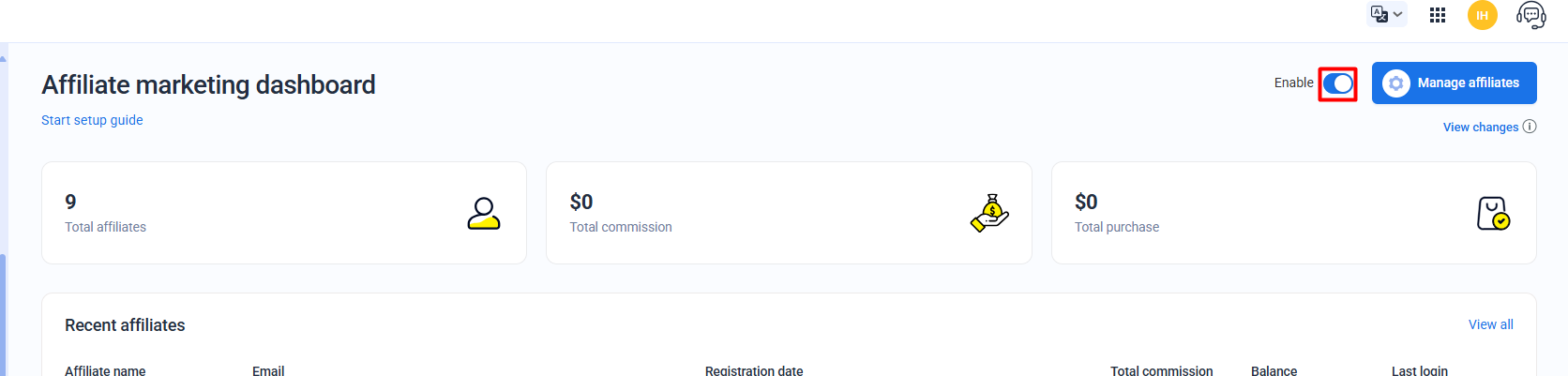 Enable/Disable Affiliate Module