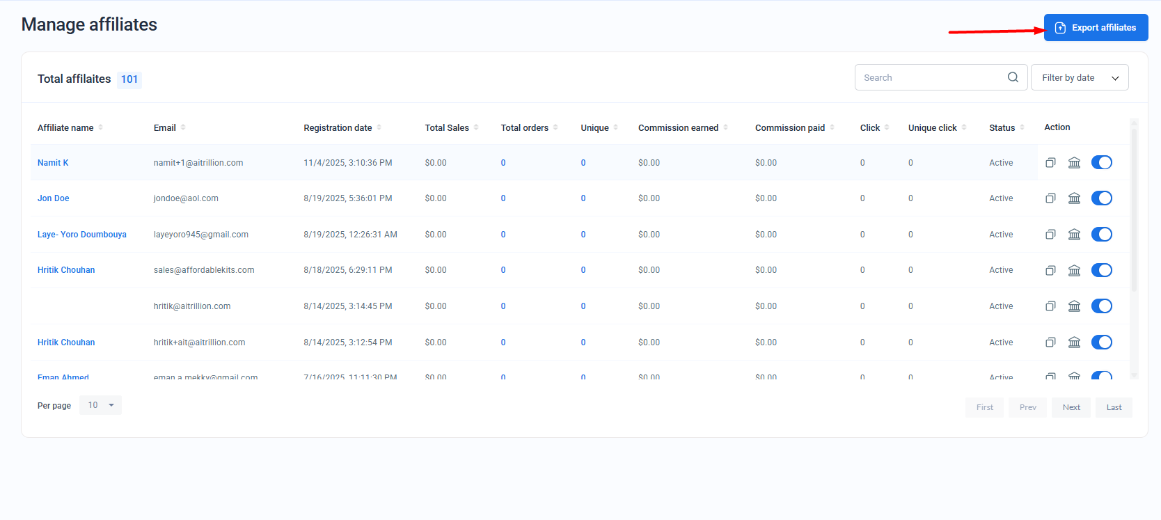 Export affiliate commissions and corresponding order details as a CSV for reporting and analysis.