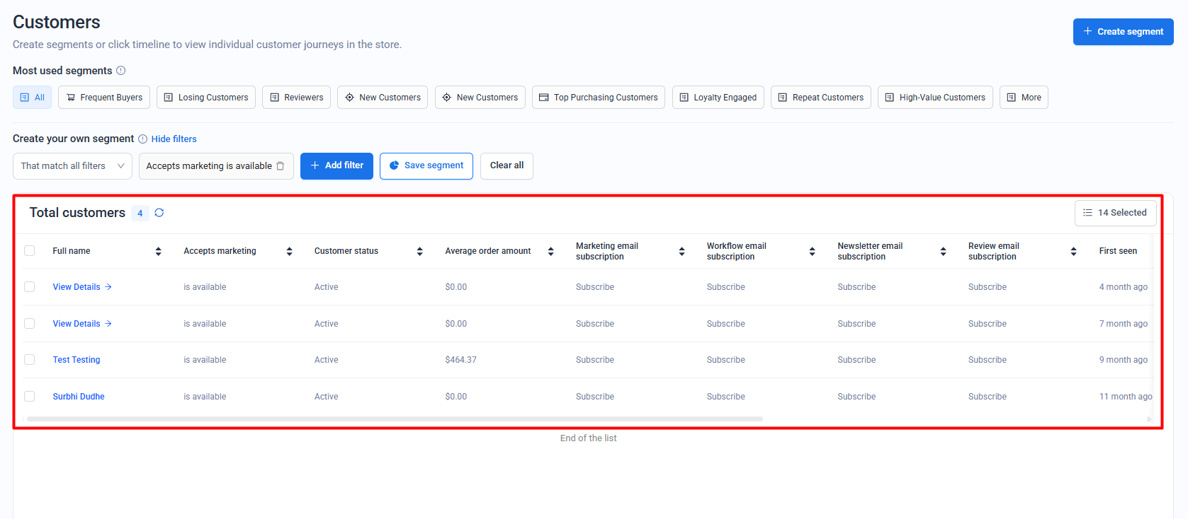 Now, you will get the list of customers who are marked as Subscribed/Unsubscribed in Shopify