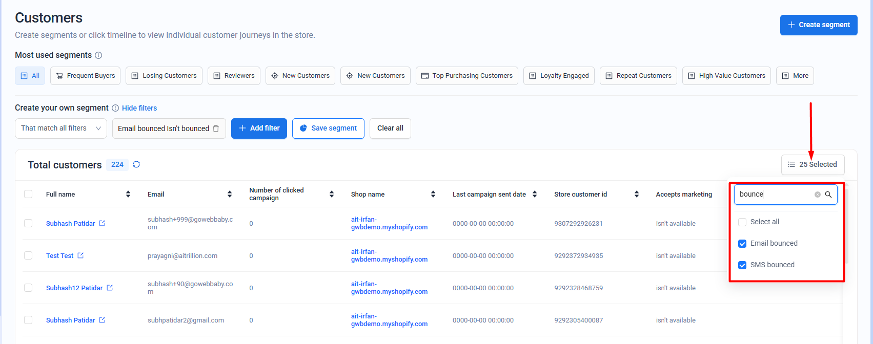 Keeping track of email and SMS delivery status is essential for maintaining a healthy contact list and improving campaign performance. Identifying customers with bounced or non-bounced Emails/SMS helps you clean your database, protect your sender reputation, and ensure your messages reach the right audience. In this article, you’ll learn how to easily generate a list of customers based on their email or SMS bounce status, allowing you to take informed actions and optimize your communication strategy.