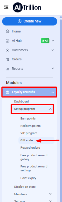 - Gift codes uploaded through AiTrillion are tracked within the loyalty program, allowing you to monitor usage and redemption status.