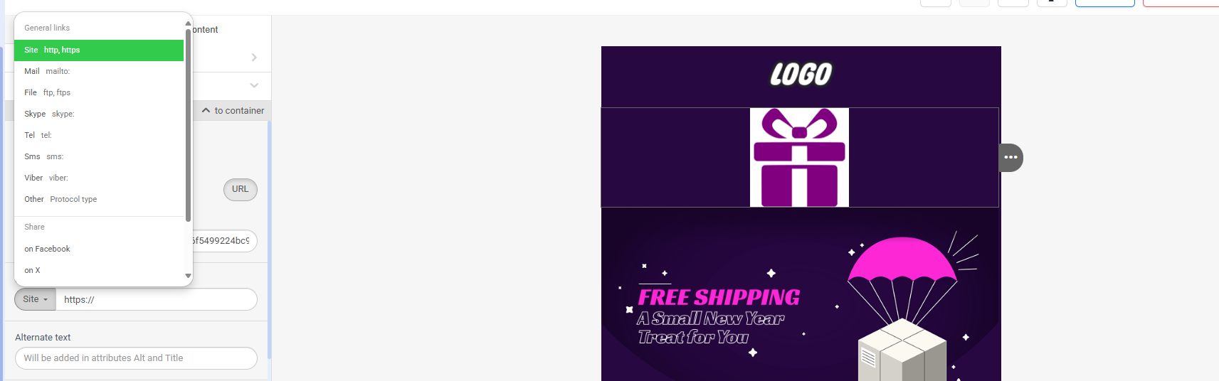 Site: Select this option to redirect users to a website.