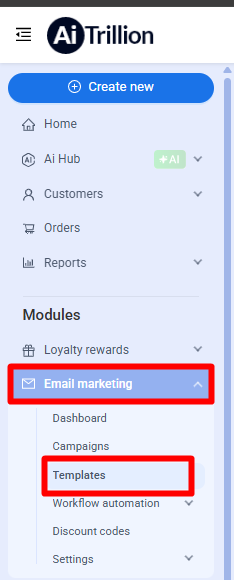 Step 1: Go to Email marketing >> Templates