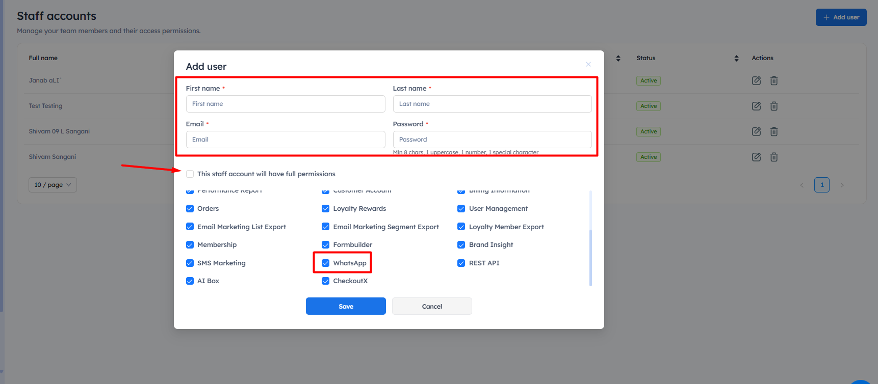 Step 2: After clicking on Add User, a pop-up window will appear where you can create a new agent account.