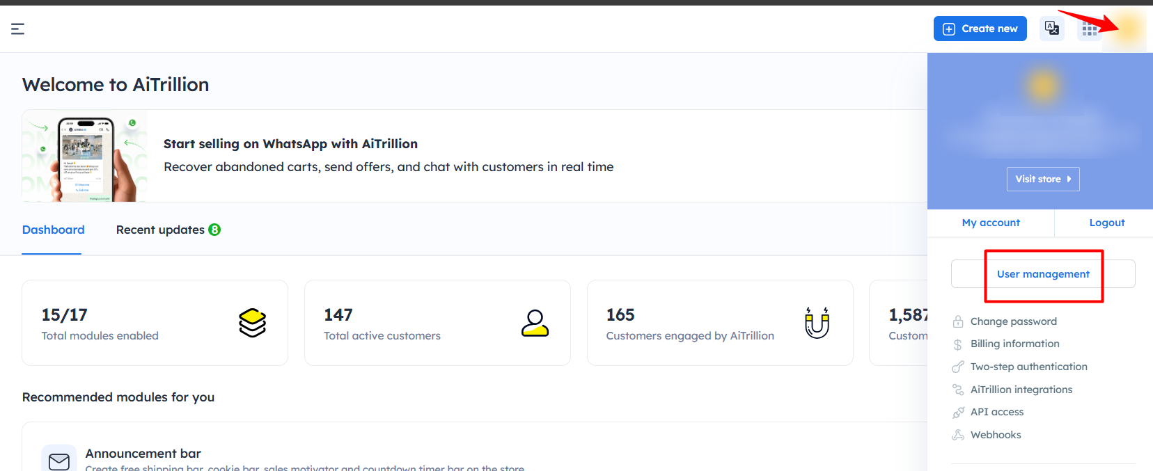 Add/remove support agents to the AiTrillion WhatsApp chat system.