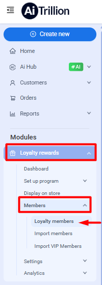 Step 1. Go to Loyalty Rewards >> Go to Members > Loyalty Members