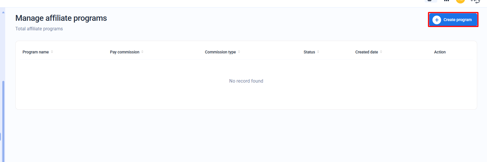 Step 2: Click on the Create Program button in the top right corner.