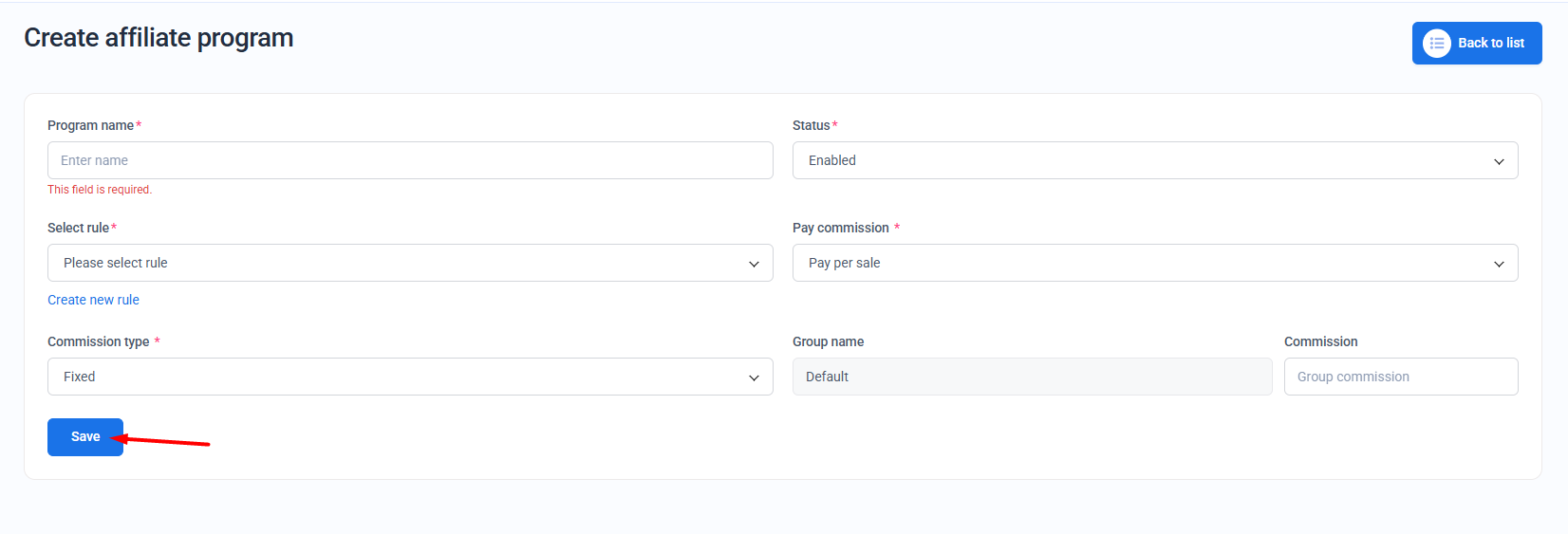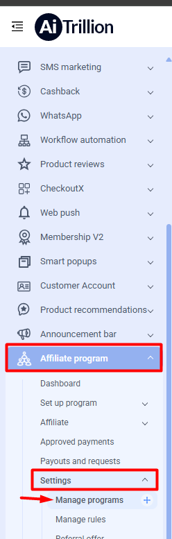 Here are the steps to create an Affiliate program: