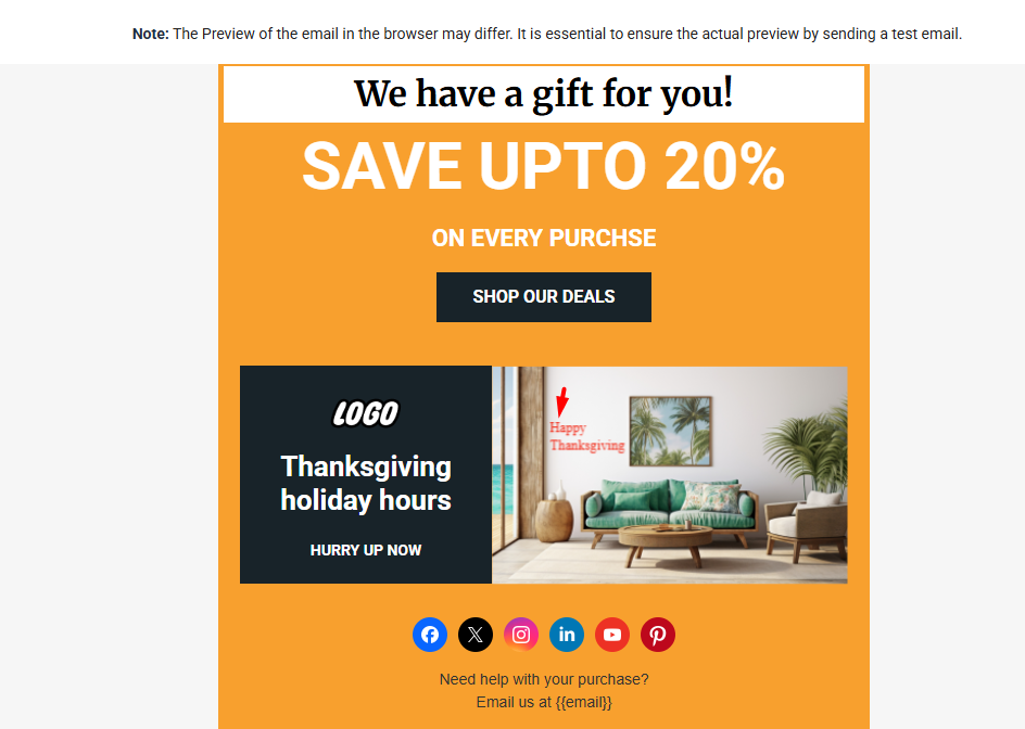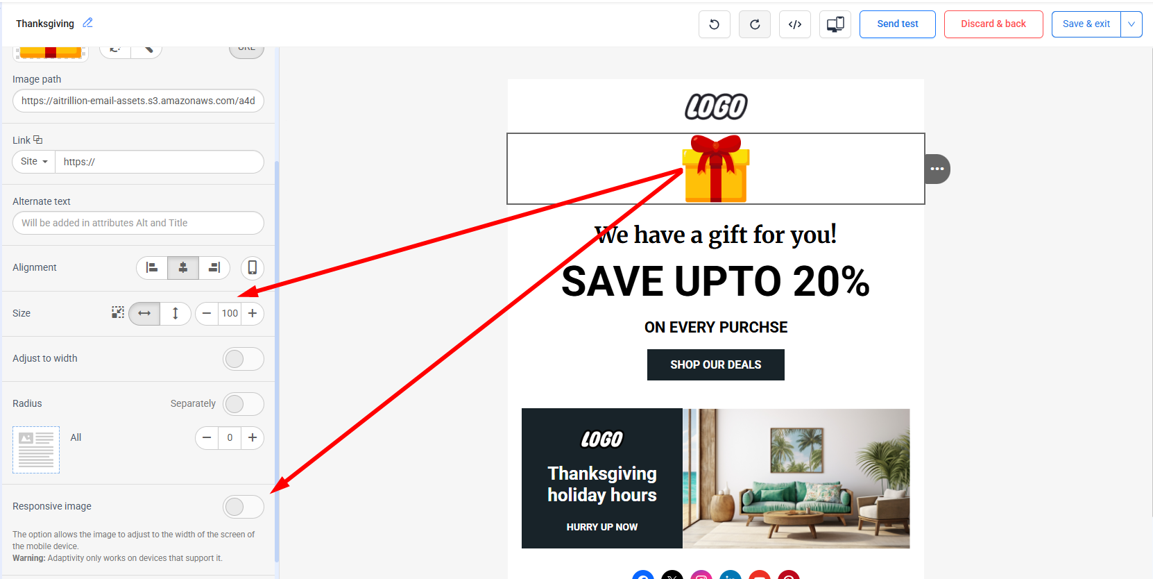 Consider using responsive email design techniques to ensure the email and its images adapt to different screen sizes. AiTrillion email templates support @media queries, which enable the adaptation of the content of email templates to the layout of mobile devices. This makes the email template easy to navigate, use, and display effectively.