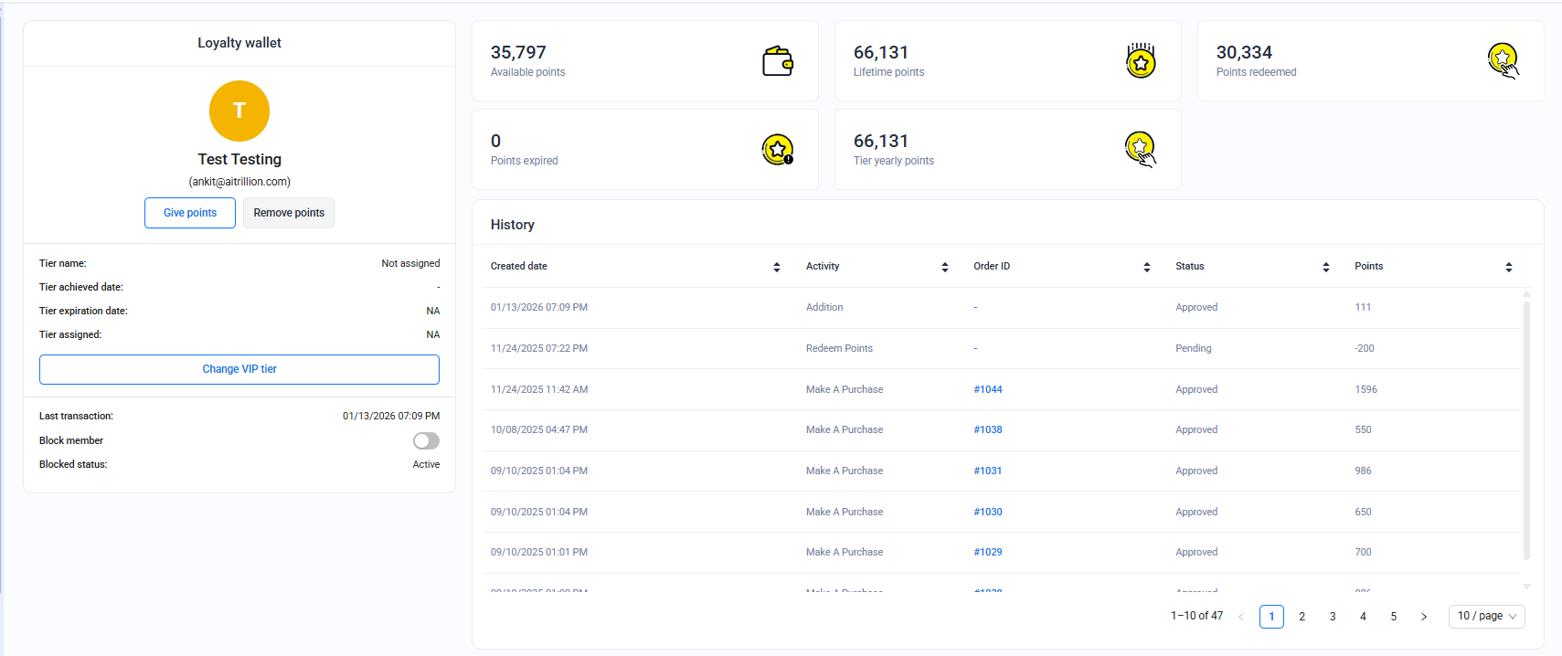 - Lifetime points include all points ever earned by the customer, even if they have been redeemed or expired.
