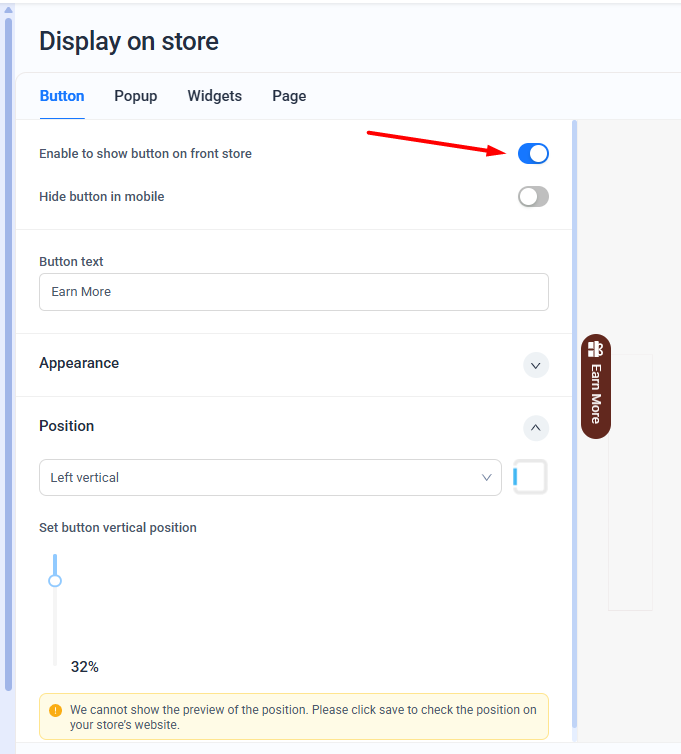 Step 2: Enable the button - Enable to show button on front store