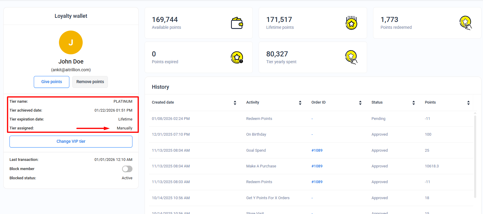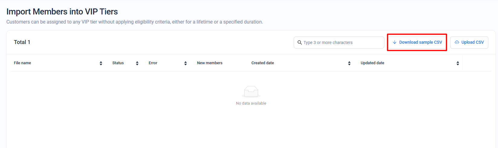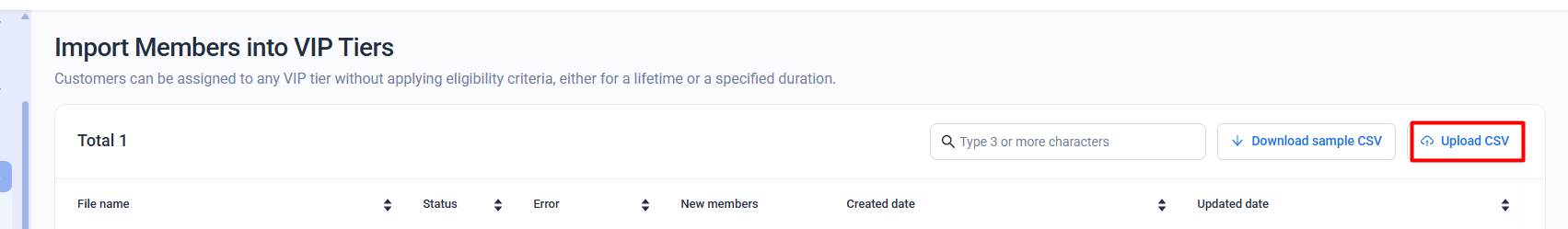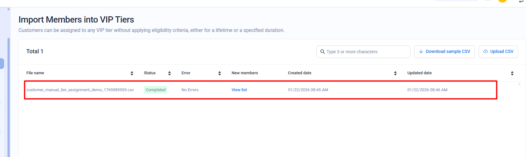 Note: If a customer is already assigned to a VIP tier and is included in the list, the customer’s VIP tier will be updated.