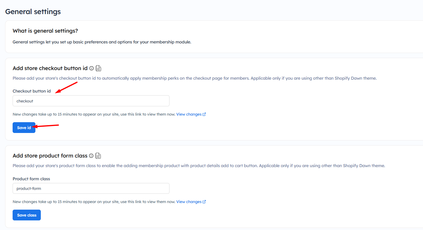 <form> tag itself. - After updating the class or checkout button ID, click Save and allow a few minutes for changes to reflect.