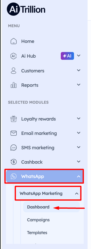 The WhatsApp Business API connection allows you to link your business WhatsApp account with AiTrillion so you can send automated messages, create marketing campaigns, and manage customer conversations directly from the platform.