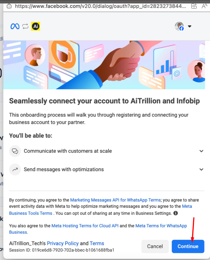 h. It will take a few moments to complete the process of linking your Meta WhatsApp Business account to AiTrillion.