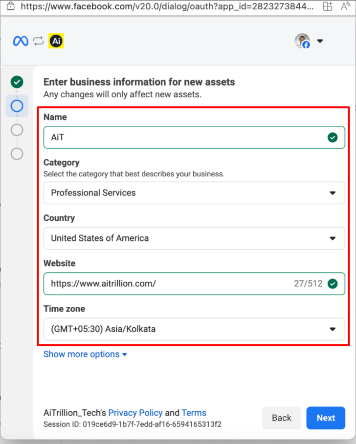 After the process is completed, the pop-up will disappear, and AiTrillion will verify the business account. The status will appear as In Progress.