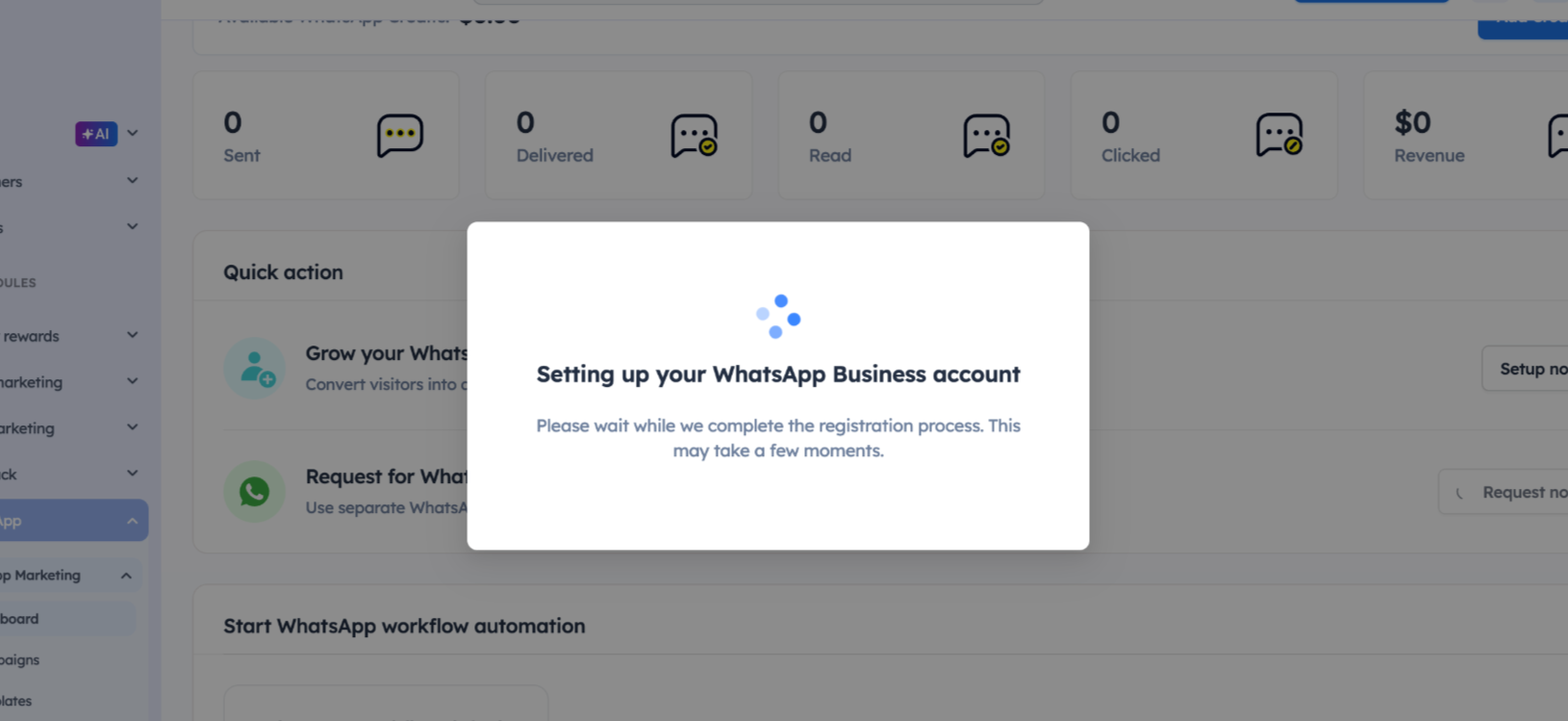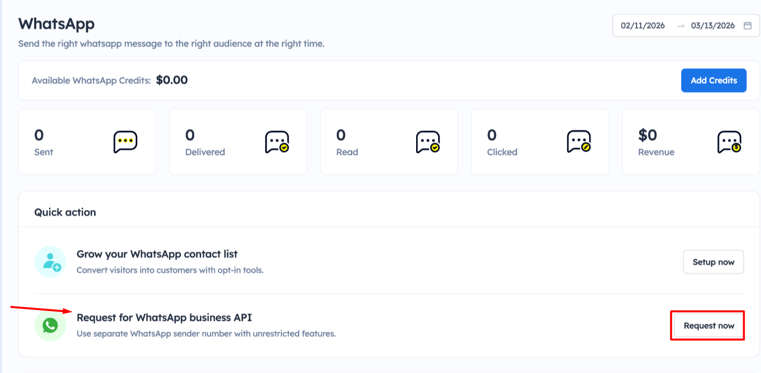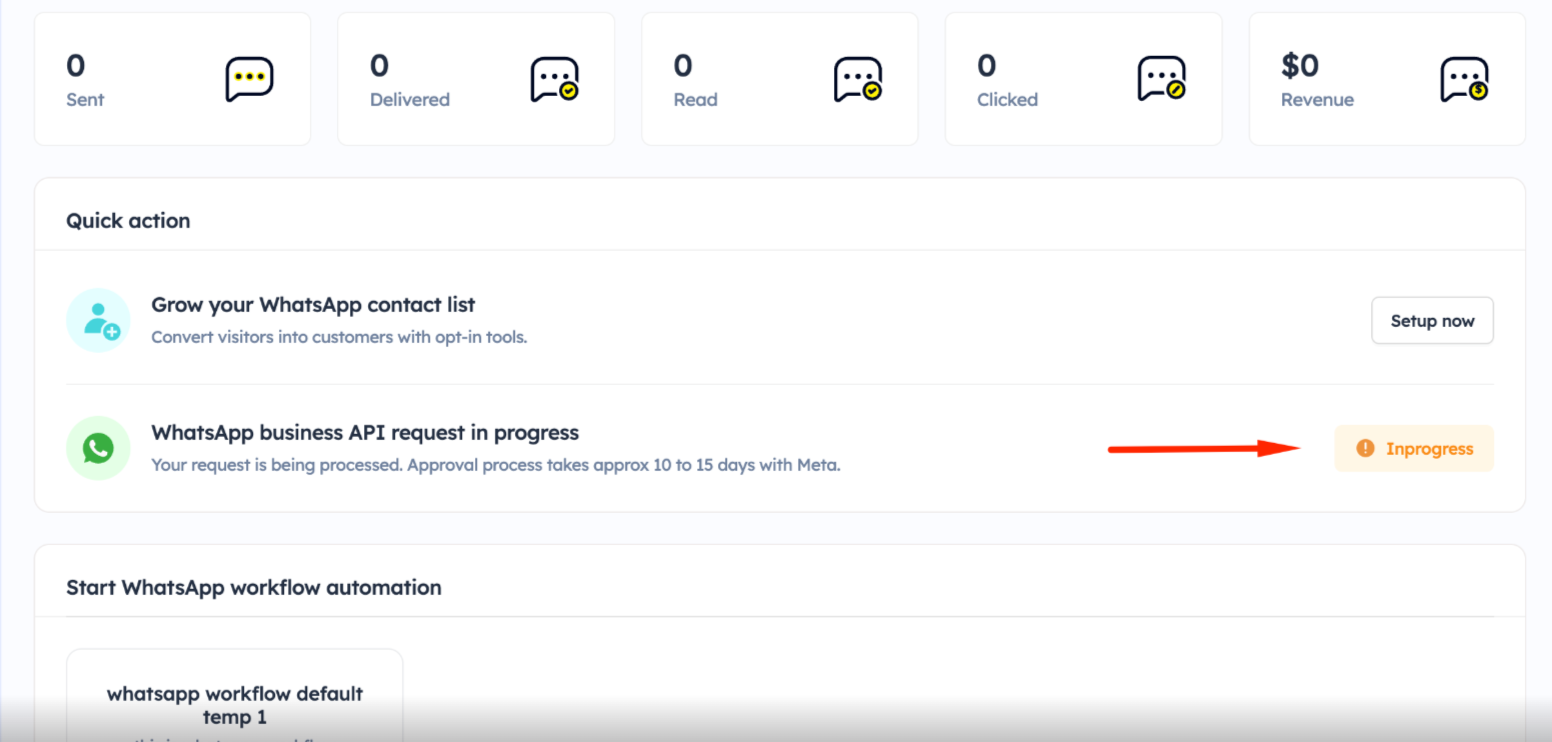 Here are the steps to request the WhatsApp business API for Workflow and WhatsApp Campaigns:
