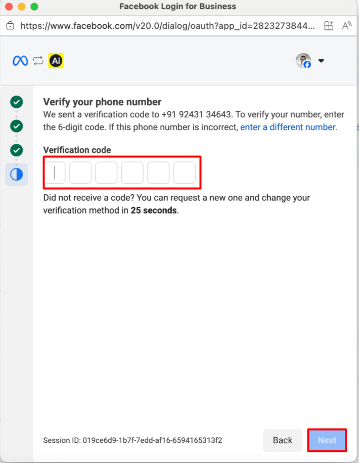 e. Enter the verification code that is sent to the provided number.
