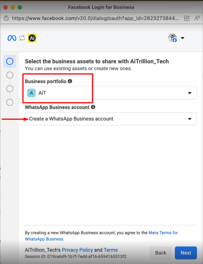 - Ensure that you are using a fresh account where a WhatsApp Business account has not already been created.