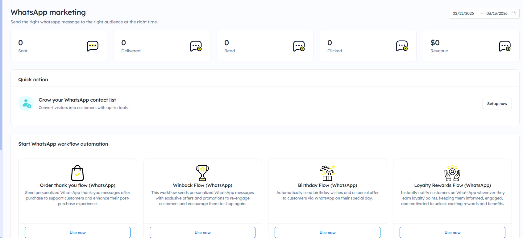 With WhatsApp integrated into your marketing tools, you can send order updates, promotional campaigns, abandoned cart reminders, and other automated messages directly to customers who have opted in.