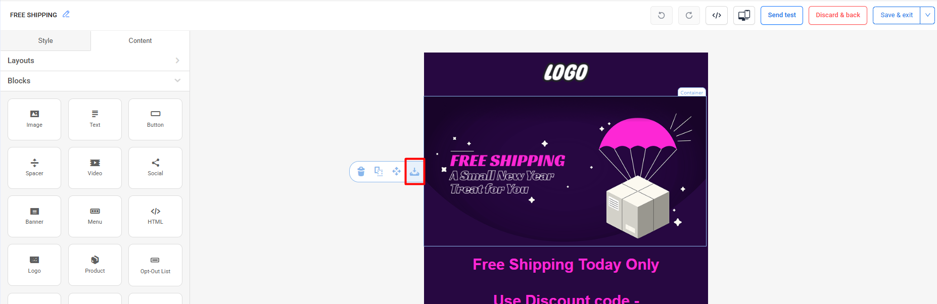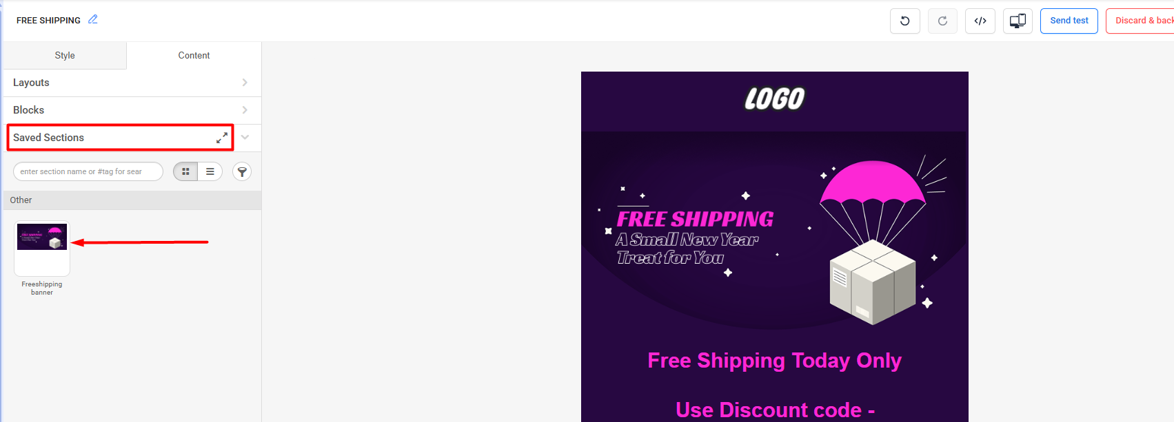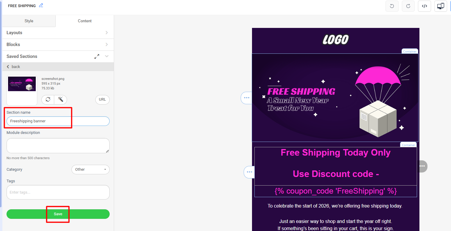 Saved sections help maintain design consistency across campaigns, but each instance can still be edited independently.