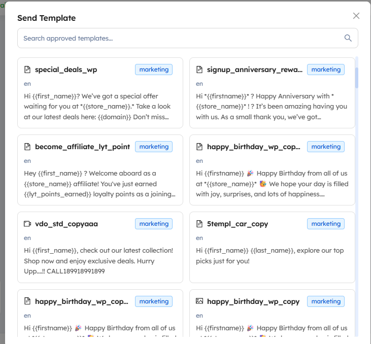 Sending a one-to-one WhatsApp message using a template allows you to communicate with customers in a personalized and efficient way. By selecting a pre-approved template, you can ensure your message follows WhatsApp guidelines while maintaining consistency in your communication.
