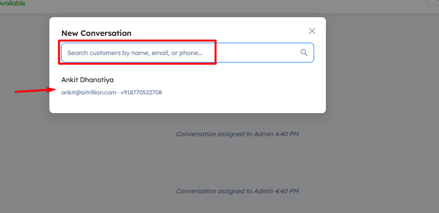 Step 3: A pop-up will appear where you can search for specific customers by name, email, or phone number.