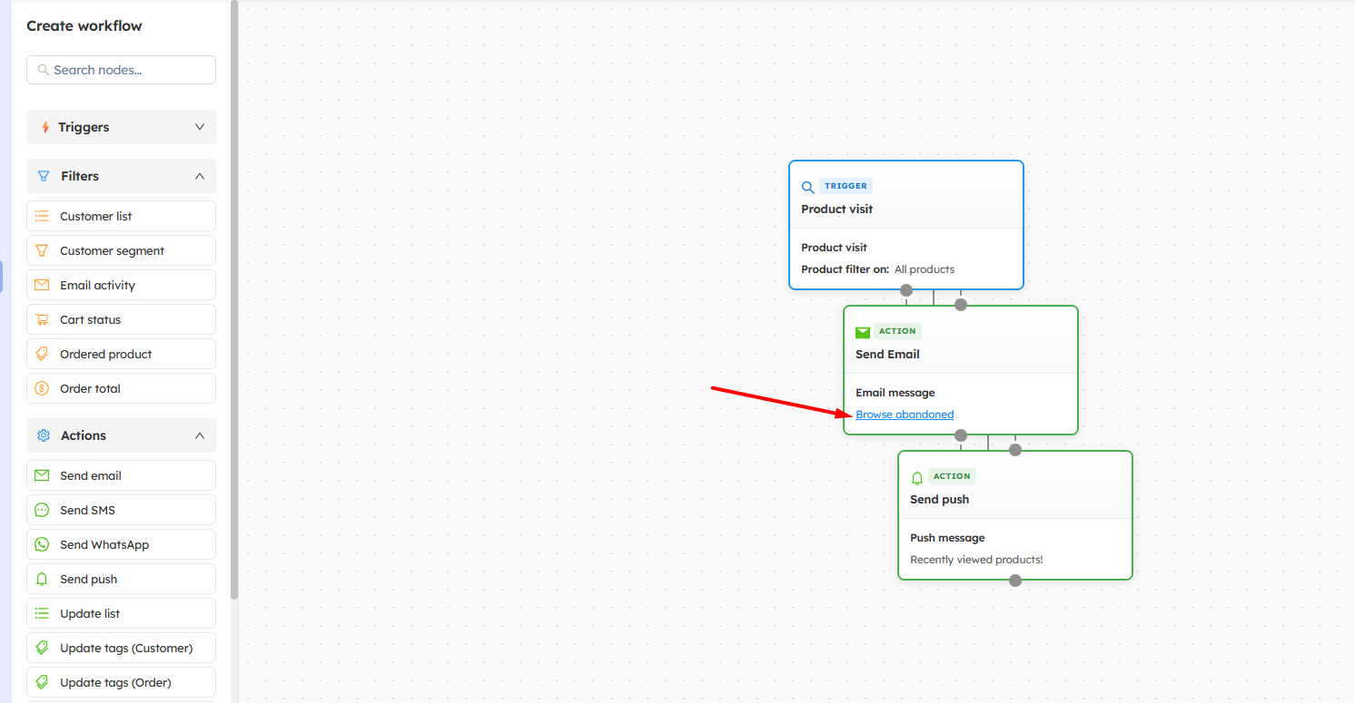 Sending an automatic email when a customer visits a specific product allows you to engage them at the right moment with relevant and personalized communication. This helps you capture interest, remind customers about products they viewed, and encourage them to take the next step in their buying journey.