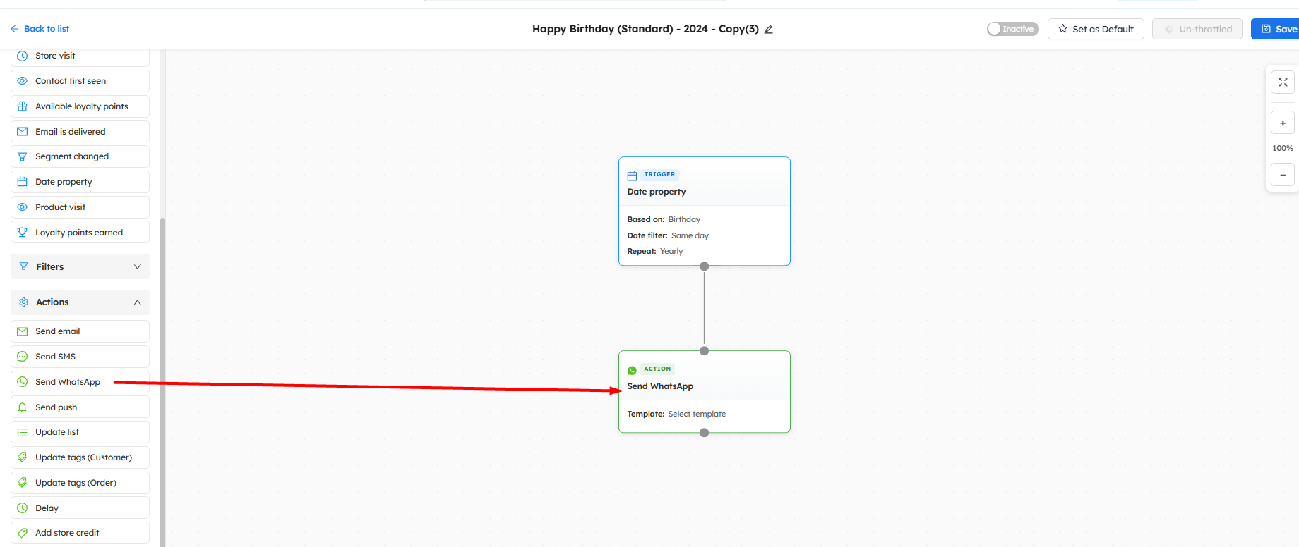 - Use Throttle Settings Carefully: Throttle settings allow you to control how many times a customer can enter the workflow and receive automated messages.