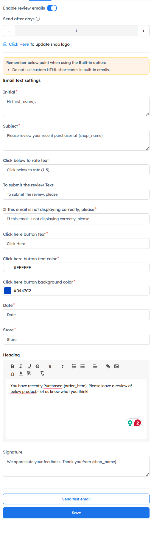 To know more about the review email and how to set up multiple review reminder emails - Click here.