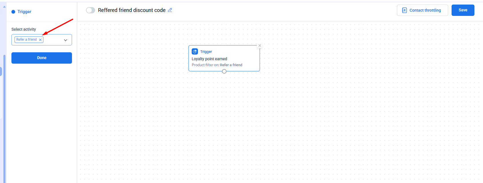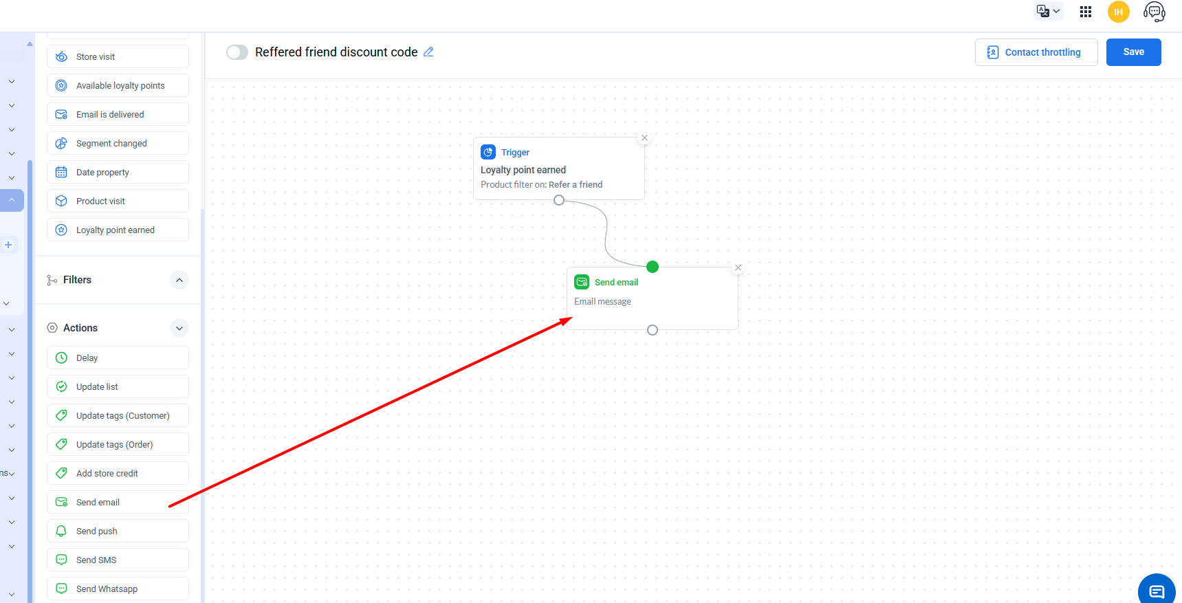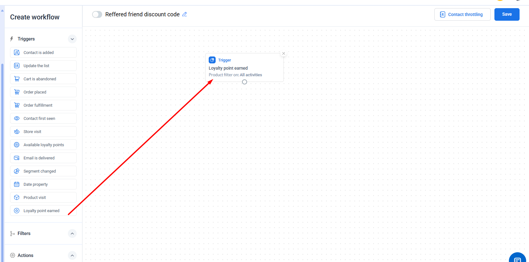 Step 2: Drag and drop the trigger Loyalty point earned.