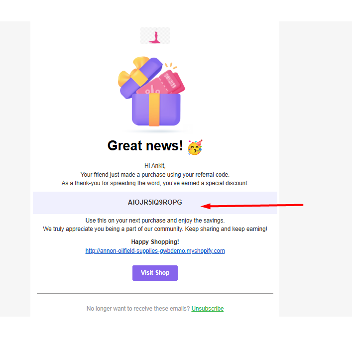 Note: This will work only in the case of the Refer a friend activity with a discount code.