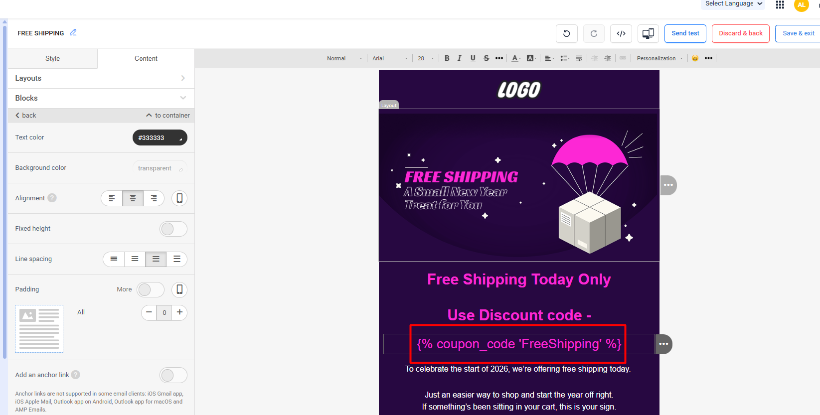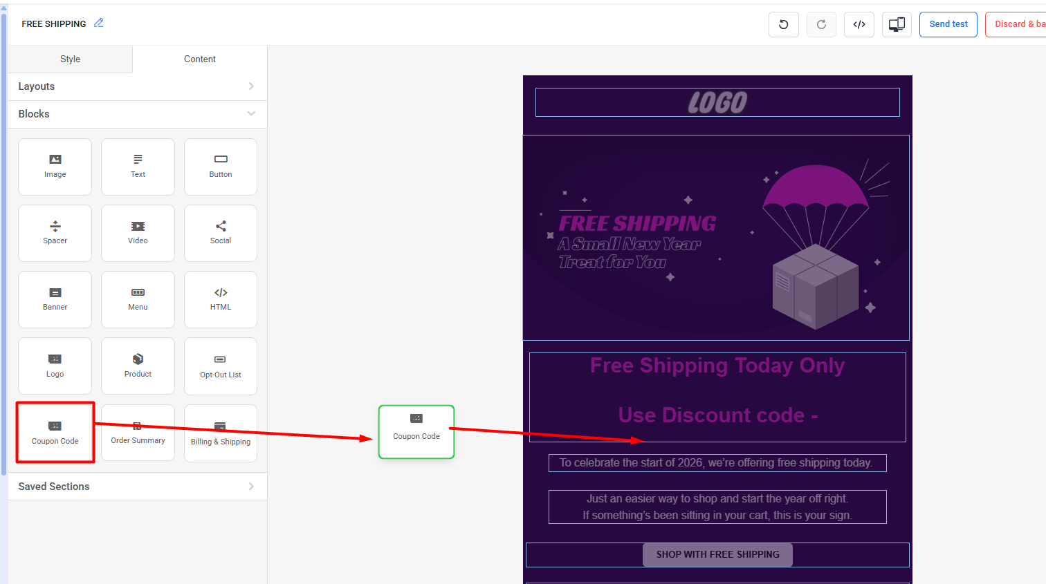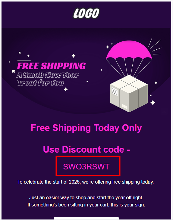 Note: Make sure to generate a large number of discount codes to prevent any disruption in the workflow. If the number of available codes runs out, the workflow will stop sending emails to customers.Step 5: Now you can send this email to the customers using the campaign or workflow.
