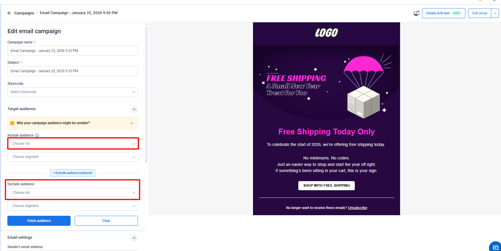 A/B test an email campaign