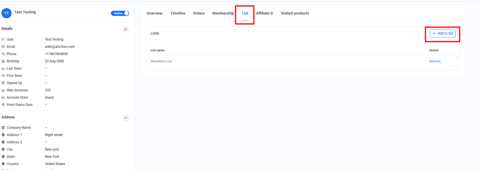 - This feature can also be used to create a test list of internal users for validating email campaigns before sending them to real customers.
