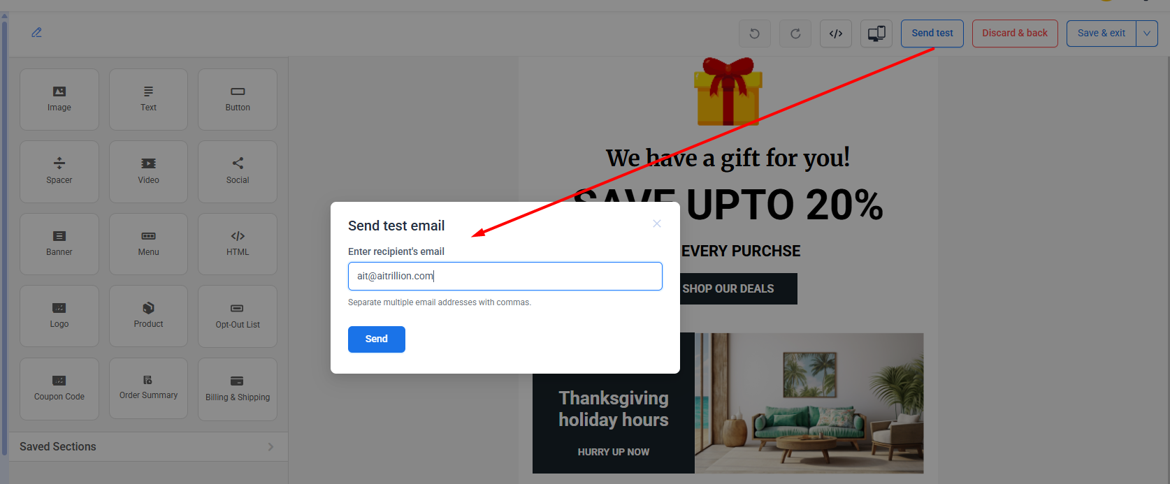 - You can verify link redirections, CTA buttons, and images using test emails.