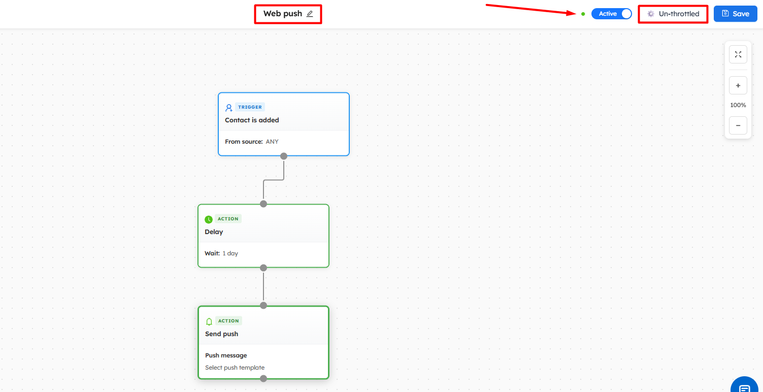 Sending web push notifications using workflows allows you to engage customers instantly with real-time, personalized messages directly on their browsers. Whether it’s promotional offers, reminders, or important updates, web push automation helps you reach users even when they are not actively on your website.