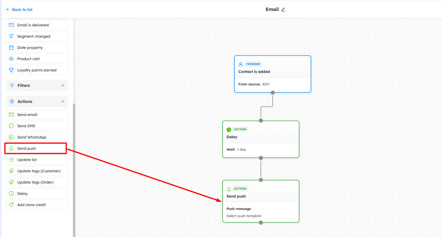 Note: If you want to use push messages for abandoned carts, don't use the workflow system. Instead, use our Abandoned Cart push series to send customized push notifications based on the product.Send automated SMS using workflow