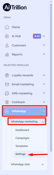 Integrate the WhatsApp provider Wati with AiTrillion to send WhatsApp messages to customers